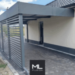 Conçu sur mesure et adossé à la maison, ce carport protège le véhicule tout en restant lumineux.Le brise-vue ajouré en façade latérale préserve l’intimité sans bloquer l’air. La structure en aluminium thermolaqué garantit une tenue dans le temps et un entretien minimal, avec une esthétique sobre qui s’accorde à l’architecture contemporaine locale.