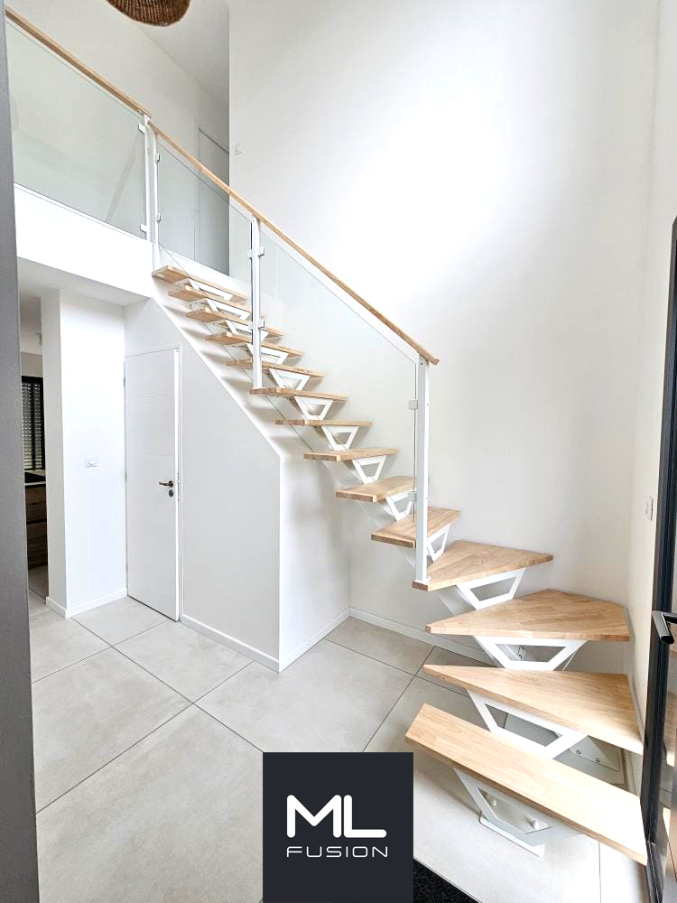 Le modèle Miro installé à Lille est un parfait exemple de notre capacité à créer des escaliers sur mesure, adaptés aux besoins spécifiques de nos clients. Cet escalier quart tournant est conçu pour offrir une transition fluide entre les niveaux, tout en maximisant l’espace disponible.