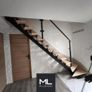 - Gain d’espace : le limon central et les supports triangulaires libèrent les côtés, rendant l’escalier visuellement plus fin.