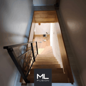 – Escalier 1/4 tournant (angle de 90°) pour optimiser l’espace.
